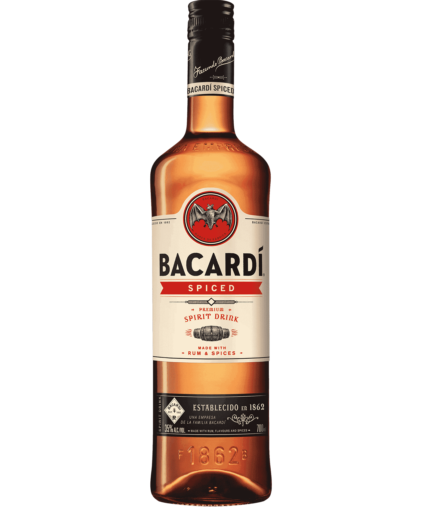 BACARDÍ Spiced wordt gemaakt van gerijpte rum en heeft een vleugje rook van vaten van gebrande Amerikaanse eik. BACARDÍ Spiced is een glutenvrije rum met natuurlijke smaken en specerijen, tegelijk sterk en soepel in de mond. BACARDÍ Spiced rum heeft zowel lichte als diepe toetsen, waardoor deze rum bij uitstek geschikt is voor het mixen van een kruidige rumdrink.